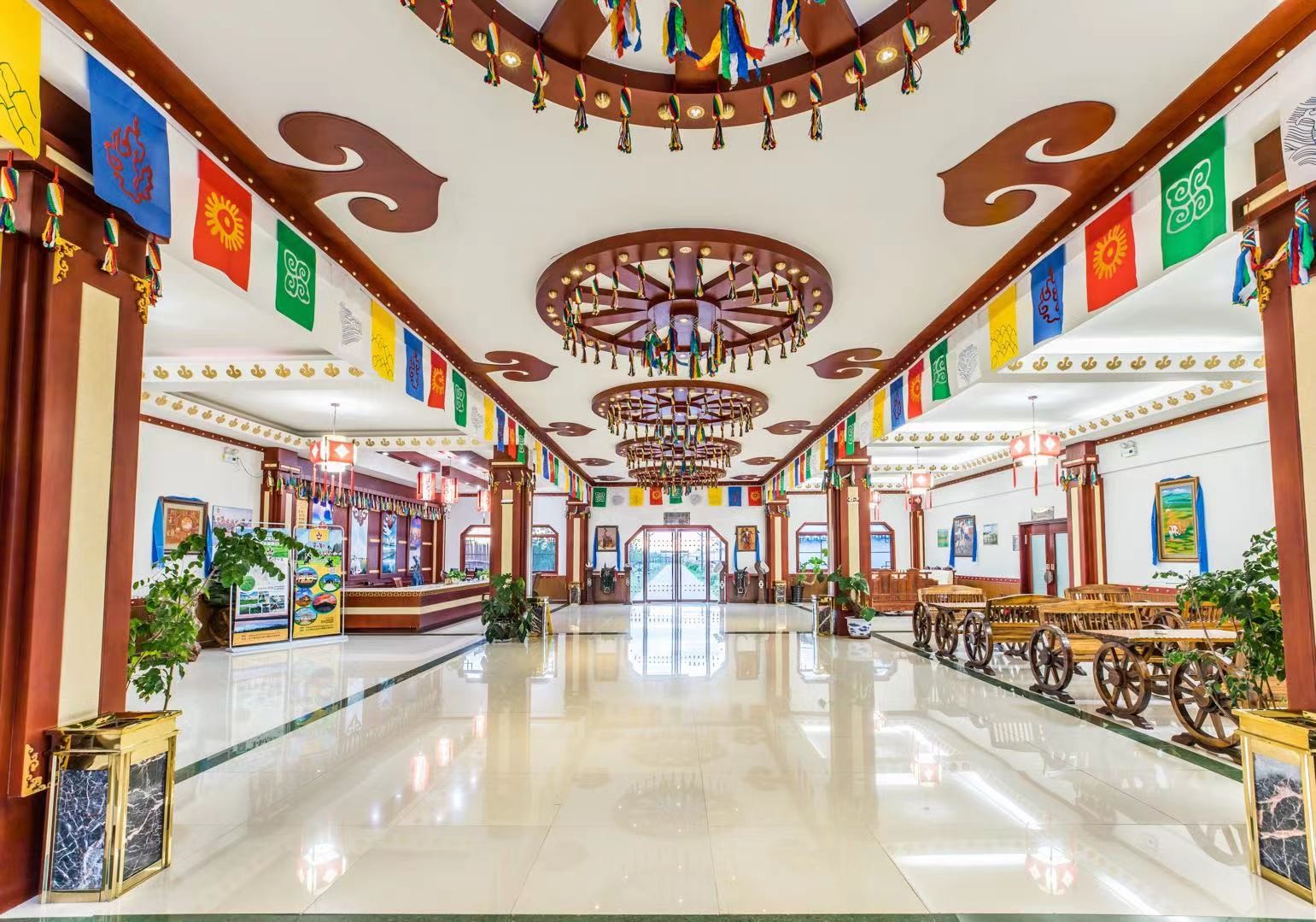 景區(qū)主體分為兩個部分分別是蒙元文化參觀區(qū)(大汗行宮宮殿區(qū))和京北草原娛樂中心兩部分,詳細(xì)內(nèi)容包括: 大汗行宮宮殿區(qū):占地30萬平方米,宮殿范圍內(nèi)由宏偉壯闊的宮門、代表民族信仰的長生天牌坊、戰(zhàn)場上的金戈鐵馬的還原場景、世界上最具特色的議事金帳、具有強(qiáng)烈宗教色彩并象征神在其位的敖包和世界上唯一的集佛教、道教、薩滿教于一體的祭天臺等建筑共同構(gòu)成景區(qū)中軸線。宮墻左側(cè)為元朝的發(fā)展史,記載了蒙古民族從原始逐水草而居的游牧生活到成吉思汗開國和元朝建立并發(fā)展壯大創(chuàng)造一片盛世的景象。生動的刻畫出在這茫茫大草原中曾經(jīng)興旺發(fā)達(dá)雄霸百年的蒙古民族征服世界,并創(chuàng)立了世界
